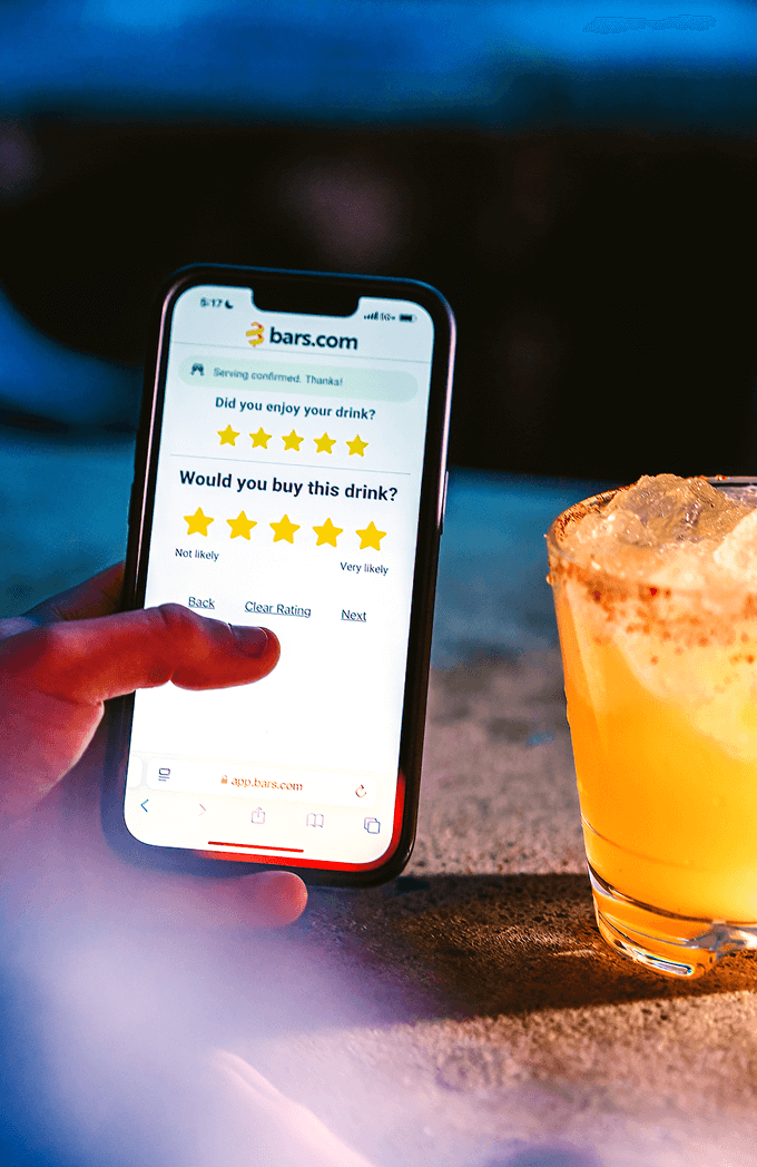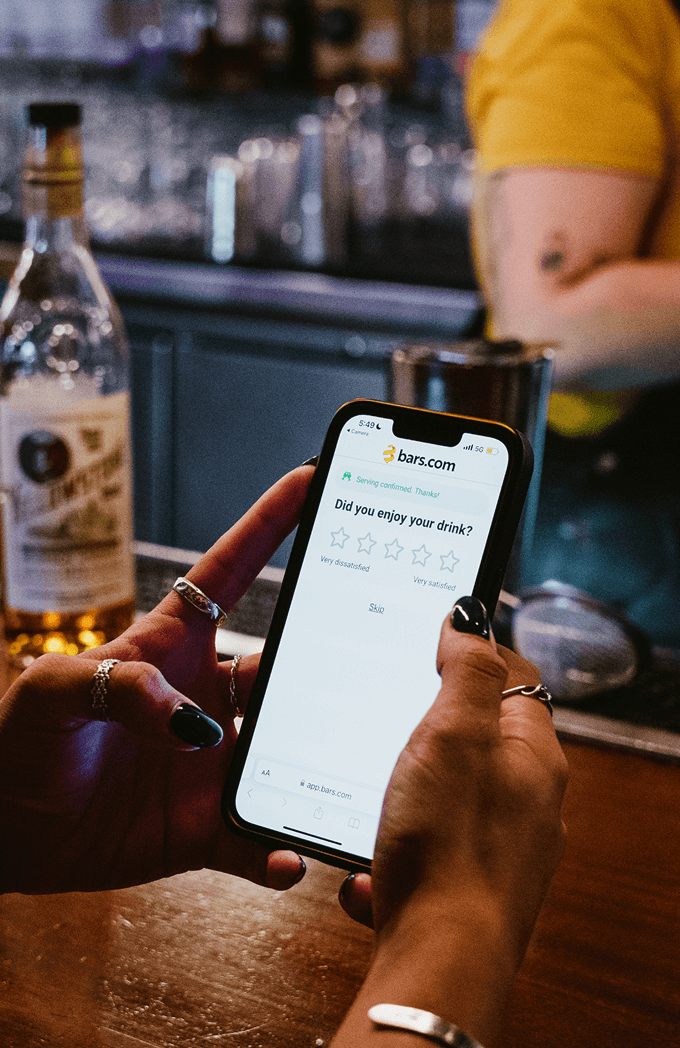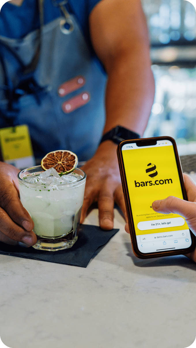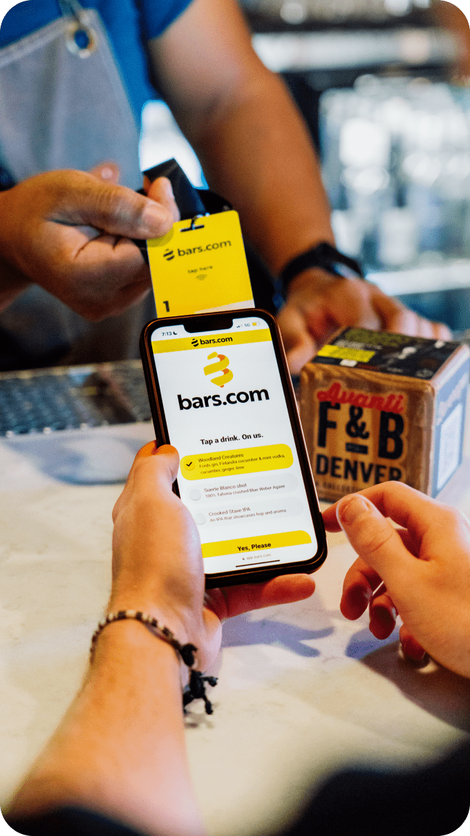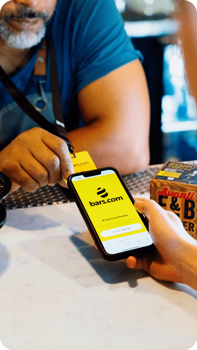 Guests enjoy a 1:1 brand experience at scale:Confirming their identity, choosing a complimentary drink, and connecting with the brand—all without compromising your data or our guests privacy. Bars.com enables brands to create a measurable, intimate, and personalized experiences for guests.